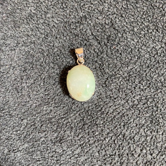 Grade A Burmese Jade Cabochon encapsulated in silver with white gold