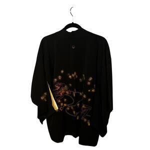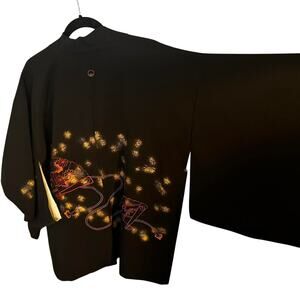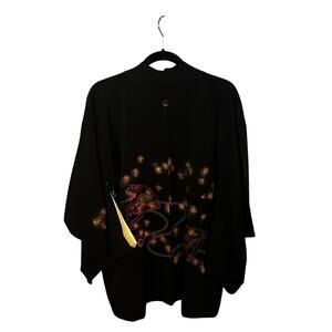Authentic Japanese Haori Black Silk Dragons Japanese Kimono Jacket Mid Length