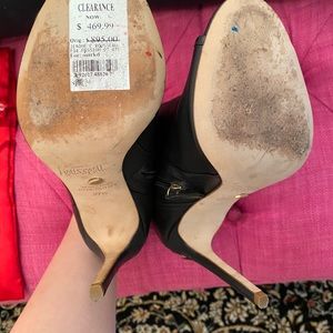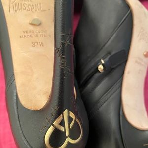 Authentic, Sexy Black Leather Jerome Rousseau Heels. Worn exactly on two occasions. Limited edition style. Gold accents and carved signature on heels. Comes in duster bag. They are so beautiful. But baby changed my feet 😭. Size is 37.5. A size 7-7.5. Please Make me a reasonable offer. Immaculate Condition. Your purchase is a donation for exit packages for abused women. Please see my about page for more information