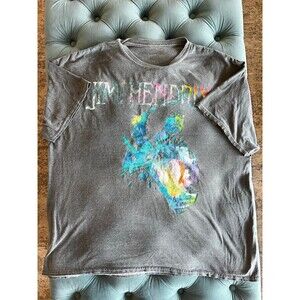 Get your hands on this authentic Jimi Hendrix vintage graphic tee. The unisex shirt features a crew neckline and short sleeves, with a relaxed fit that is perfect for any season. The gray cotton material is machine washable, making it easy to care for. This tee is perfect for any rock or music enthusiast, with its fun and vibrant graphic print. The shirt is available in one size (O/S) and is perfect for both men and women. The Jimi Hendrix brand is known for its unique design and Rock and Roll theme, making this shirt a must-have for any fan. Wash wear noticeable for its age.