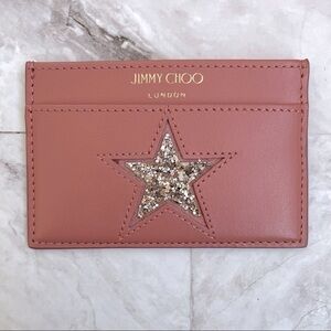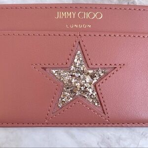 This is a brand new Jimmy Choo Aarna leather card holder in a pink mix. Features smooth pink leather with gold heat stamped logo, the star in the center of the cardholder has glitter. This does not come with a box, dustbag or tags but it is 100% authentic and never used and brand new.