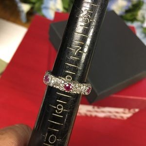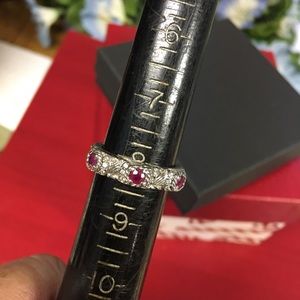 This authentic Judith Ripka stack ring is cabled sterling silver design with three (3) ruby stations.