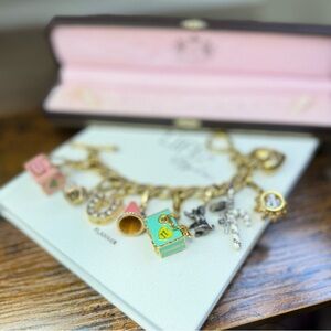 A statement Juicy Couture charm bracelet with ~10 playful, chunky gold-tone charms (think shopping bag, suitcase, tennis racket, all original designs)—a collector’s dream. Originally valued at over $600 now listing at $500—priced to sell fast. Comes with the original Juicy box (if available), ships within 1–2 days.