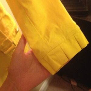 Yellow Juicy Couture trench coat with yellow accent. Quarter sleeves with ruffles on the end.Size small. Worn once. Extra button included.