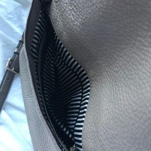In very good condition. Striped interior. It holds so much!! Can double as a crossbody & a shoulder bag! Still has the new purse smell. So sad to see this go!