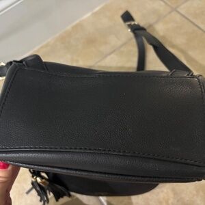 Selling an authentic Kate Spade black backpack purse like new. Only used a few times. No spots, rips, or tears inside or outside purse. Made of leather & comes with 1 zipper pocket inside & 1 open pocket also on the inside as well as 1 open pocket on outside. Has gold hardware with 2 tassels. Straps on loosest setting measures 30” long. Comes from