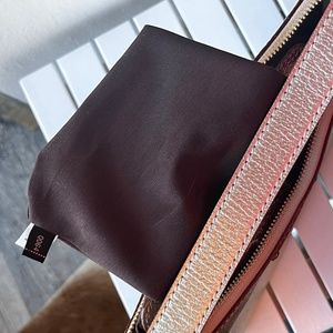 Saffiano leather. gold Leather Handles. Interior Side Wall Zipped Pocket. Interior Side Wall Open Pocket. Top zipper Closure