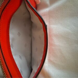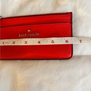 Authentic Kate Spade Large Slim Staci Card Case. One side has 7 card slots and a larger pocket. Other side has one larger pocket. Cream colored, satin, logo lining.