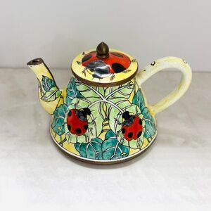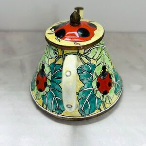 Authentic Kelvin Chen Ladybug Teapot Vintage | Taiwan Cloisonné Enamel | Garden