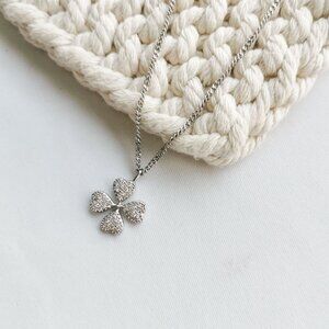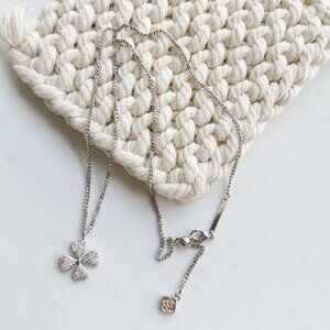Authentic Kendra Scott Clover Silver White Crystal Short Pendant Necklace