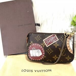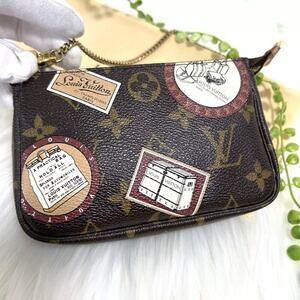 Authentic LOUIS VUITTON Brown Monogram Patch Mini Chain Pochette W/ Box Dust Bag