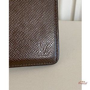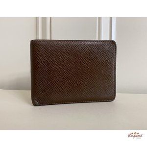 Authentic LOUIS VUITTON Brown Taiga Leather Multiple Bifold Wallet CT1004