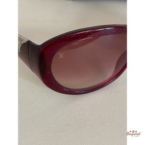 Authentic LOUIS VUITTON Burgundy Acetate Iris PM Rhinestone Oval Sunglasses- Z0334W