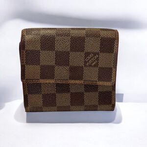Authentic LOUIS VUITTON Elise Wallet Trifold Portefeuille Damier Ebene Canvas