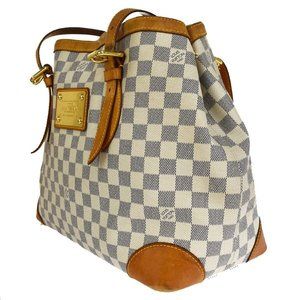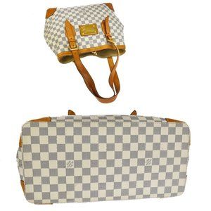 Authentic LOUIS VUITTON Hampstead Shoulder Bag Damier Azur Leather White