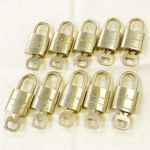 Authentic LOUIS VUITTON LV 10 SET PADLOCK CADENA KEY BAG CHARM GOLD