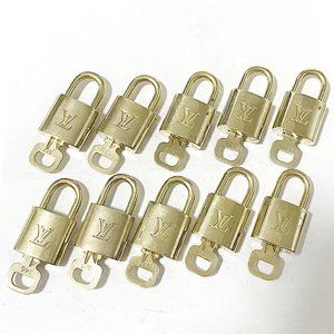 Authentic LOUIS VUITTON LV 10 SET PADLOCK KEY BAG CHARM CADENA GOLD-PLATED