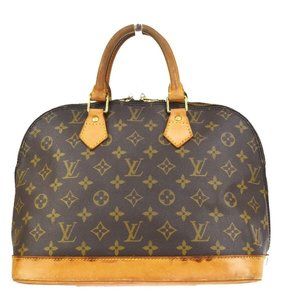 Authentic LOUIS VUITTON LV Logo Alma Hand Bag Monogram Leather Brown France