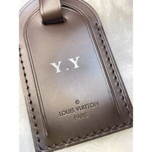 ✨Authentic LOUIS VUITTON LV Small Vachetta Dark Brown Rare Leather Luggage Tag