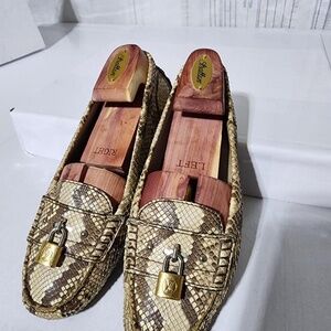 Authentic LOUIS VUITTON Moccasin Loafers Lock It Snake Skin Size 37.5
