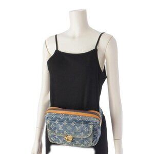 Authentic LOUIS VUITTON Monogram Denim Bum Bag Waist Bag Pouch Blue