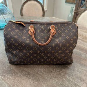 Vintage bag in great condition. Exterior monogram is nice with good color. Corners and piping intact with normal wear. Double rolled leather handles in good condition, some superficial cracks. Leather pull tab is good. Minor tarnishing of hardware. Honey patina of all leather parts. Interior is clean. The Speedy 40 is no longer in production. The 35 Speedy which is smaller runs $1620 currently. Includes certificate of authenticity. Also comes a bag organizer and lock # 317.
