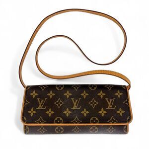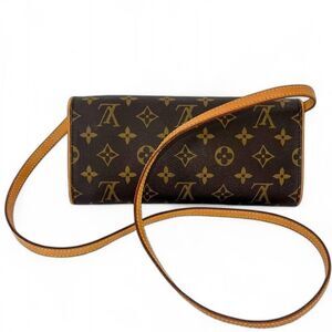 Authentic LOUIS VUITTON Pochette Twin Dark Brown Logo Monogram Shoulder …
