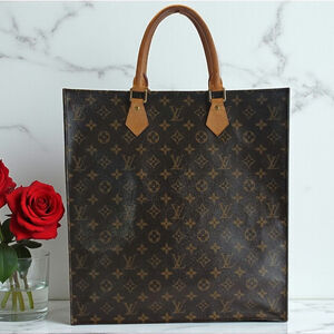 Authentic LOUIS VUITTON Sac Plat Leather Handle Monogram Tote MSRP $2,750