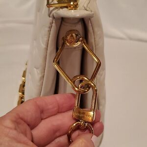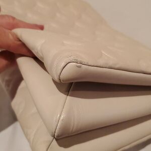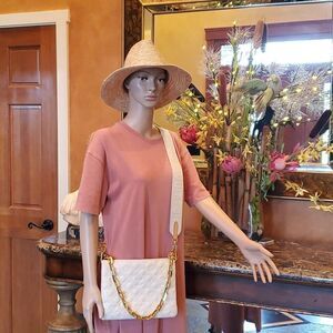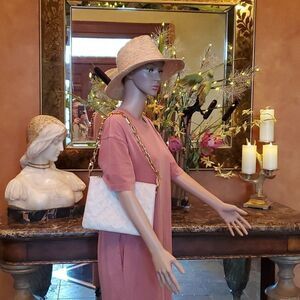 Can be worn various ways. Please pay attention there is some wear on corners of bag, some discoloration in canvas strap, however not visible when wearing! Hardware & zipper in excellent condition! Chain and Strap can be removed and use as clutch. Very Clean inside, only wore one season. I received tons of compliments when i Rocked this Bag!