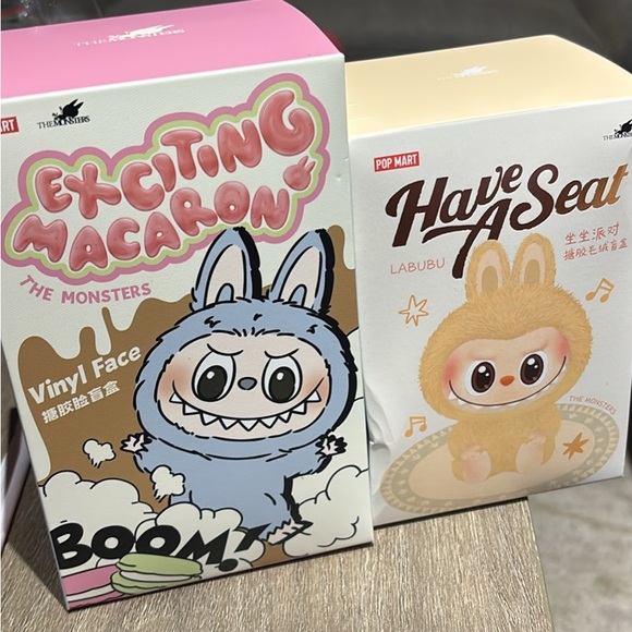 New unopened box. Duplicates that I already own so looking to sell! I can provide the popmart receipt. I have one exciting macaron and one have a seat. I can tell you which ones they are or you can leave it a surprise! Boxes have QR code for authenticity!