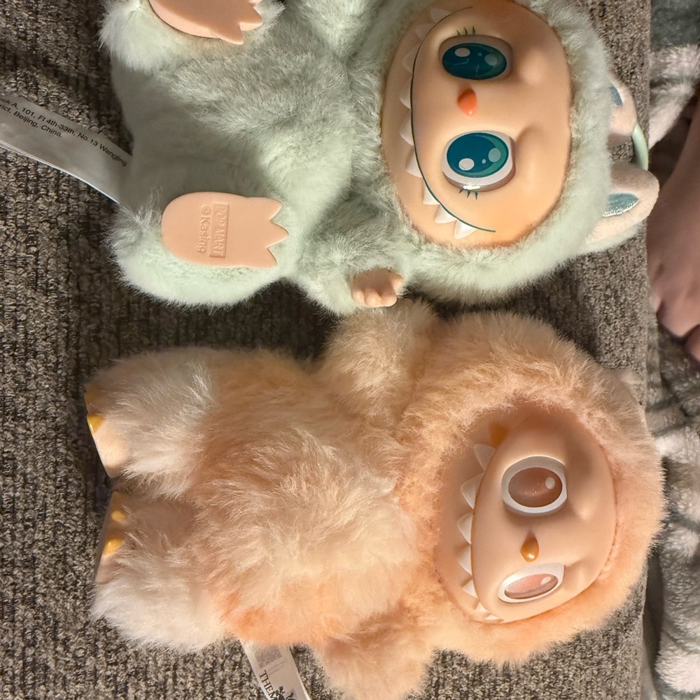 Brand new AUTHENTIC Labubu!!!Adorable plush monster dolls in mint green and peach. Perfect for collectors or as a gift. Never played with but I don’t have the boxes
