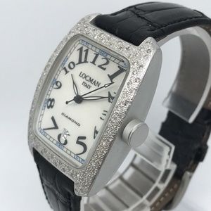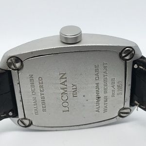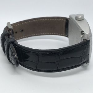 “Pre-owned watch minor scratches on case. Normal wear sign on leather band.”