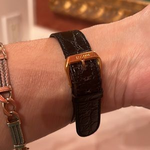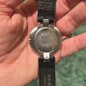 Authentic ladies Jubile Rado Swiss made watch in good used working condition. Battery just replaced. Sapphire Crystal without any scratches or blemishes. Some wear to leather band. Diamond hour marker accents. Final sale. No trades please.🍃🌹
