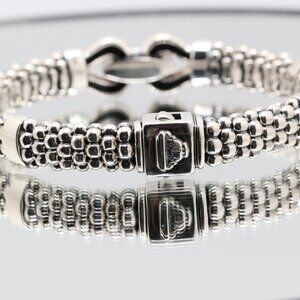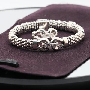 Authentic Sterling Silver Design Lagos Caviar Bracelet with 16 Cluster Natural Diamonds