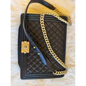 Authentic Large Chanel Boy Bag - Black with Gold Hardware