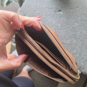 Well loved. Has blemishes. Perfect for any outfit. Great compact storage.
