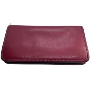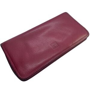 Authentic Loewe Pinkish Red Leather Zip Around Designer Wallet / Clutch