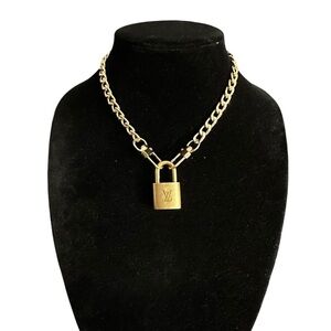 Authentic Louis Vuitton #303 Lock & Key Set on a 18K Gold Plated Chunky Chain Necklace