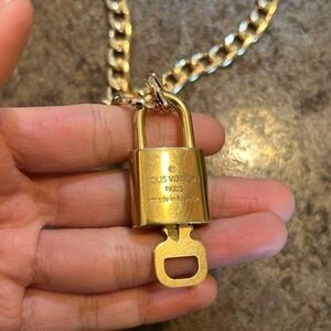Authentic Louis Vuitton #319 Lock & Key Gold Brass w Short 15 " New Unbranded Chain.. Super Cute 😍