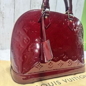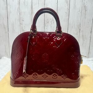Authentic Louis Vuitton Alma Handbag Monogram Vernis Red Preowned SN4114