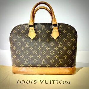 Authentic Louis Vuitton Alma Satchel Bag MM Medium Monogram with Dust Bag& Charm