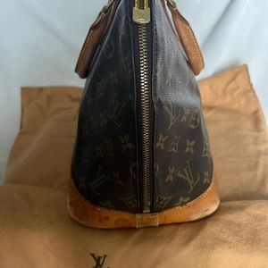 WELL loved AUTHENTIC Louis Vuitton Alma tote. Purchased this bag in 2013 new, and have used it often since. Per photos, you can see scuff marks along leather base, heavy water damage (I’ve never attempted to clean, so I don’t know if it can be removed), and a slightly noticeable stain along the exterior on one side. All hardware is in good condition, zipper works just fine, and handles are in overall good condition. No tears in leather, stitching is still intact, and interior is almost perfect condition. I did my best to show photos of all damage so you know what you are getting- I’m also selling this bag so cheap to reflect all the damages. Purse does come with dust bag. Please ask any and all questions. Smoke free home.
