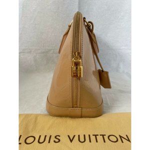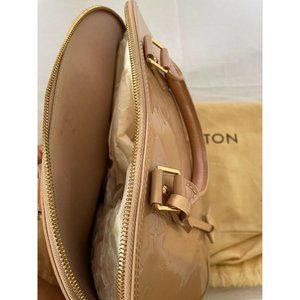 Authentic Louis Vuitton Beige Florentine Monogram Vernis Alma GM Bag Zip