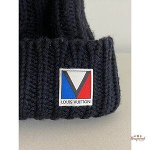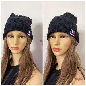 Authentic Louis Vuitton Black 100% Wool Beanie Hat Cable Knit Cap M75377