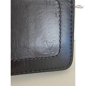 Authentic Louis Vuitton Black Leather 6 Card Holder Bifold Men's Wallet - CA3058