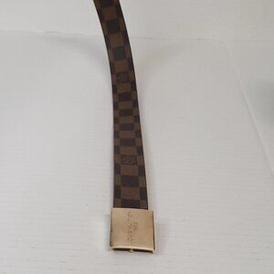 Authentic Louis Vuitton Brown Gold Checkered Damier Ebene Belt lux170-092225
