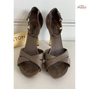 Authentic Louis Vuitton Brown Monogram Empreinte Leather Ankle Strap Sandal 38.5