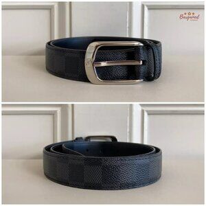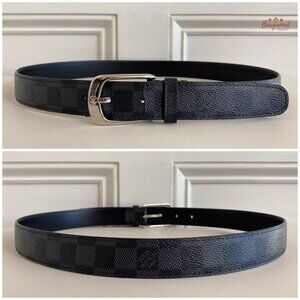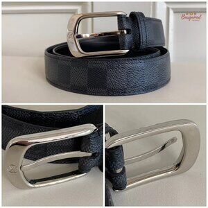 Authentic Louis Vuitton Canvas Leather Damier Graphite Ellipse Buckle Belt 90/36
