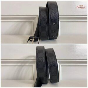 Authentic Louis Vuitton Canvas Leather Damier Graphite Ellipse Buckle Belt 90/36