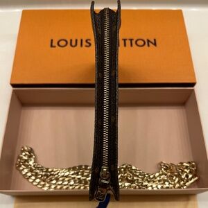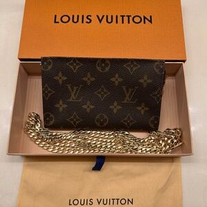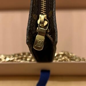 Authentic Louis Vuitton Crossbag with non branded 47” Gold Chain. Purse is gently used and in great condition. Zipper glides smooth, brass is vibrant and looks great. Inside has a little peeling but nothing serious, corners of purse in great condition. Purse also comes with Louis Vuitton Box but has no dust bad.